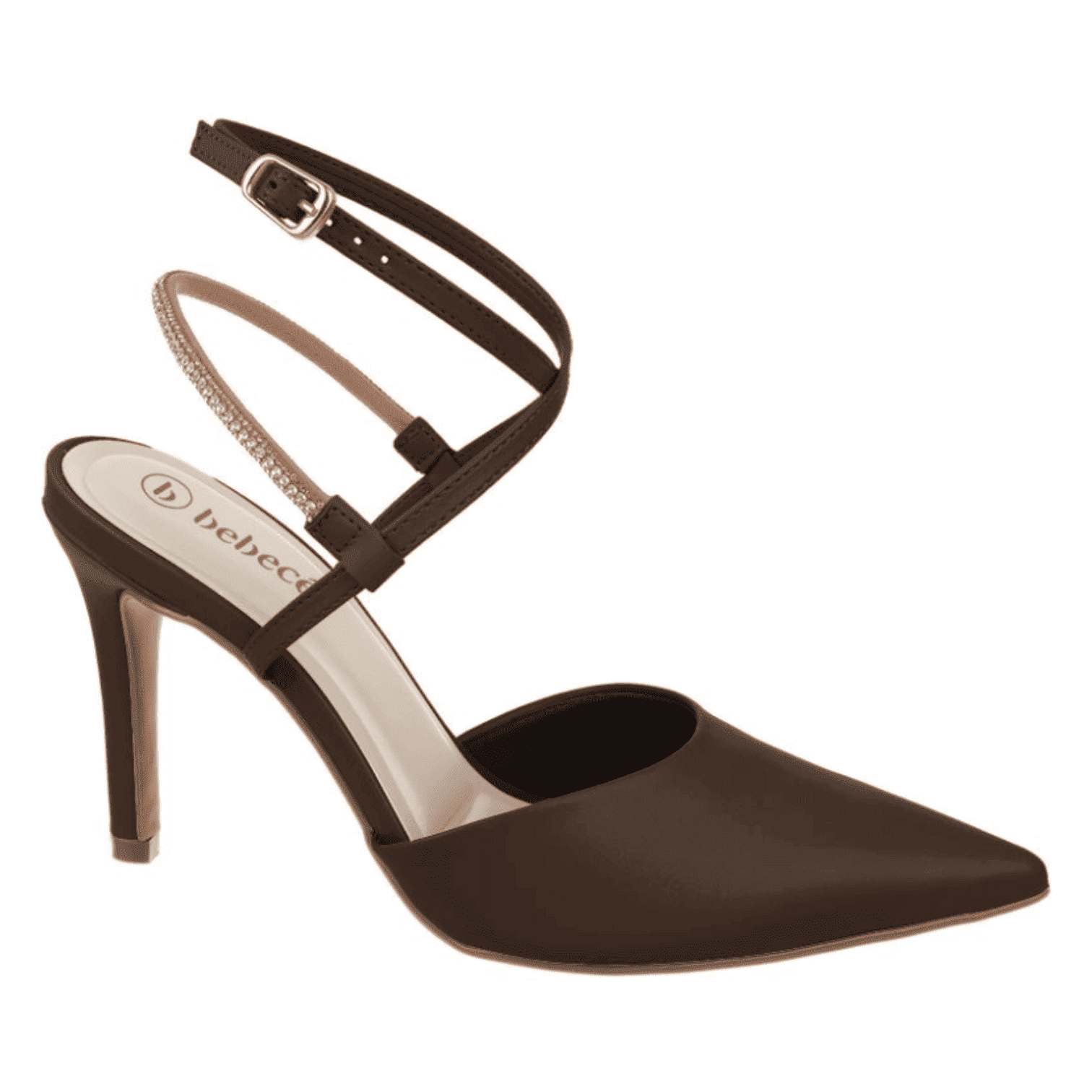 Stiletto con diseño único, correa de brillo para mayor detalle.