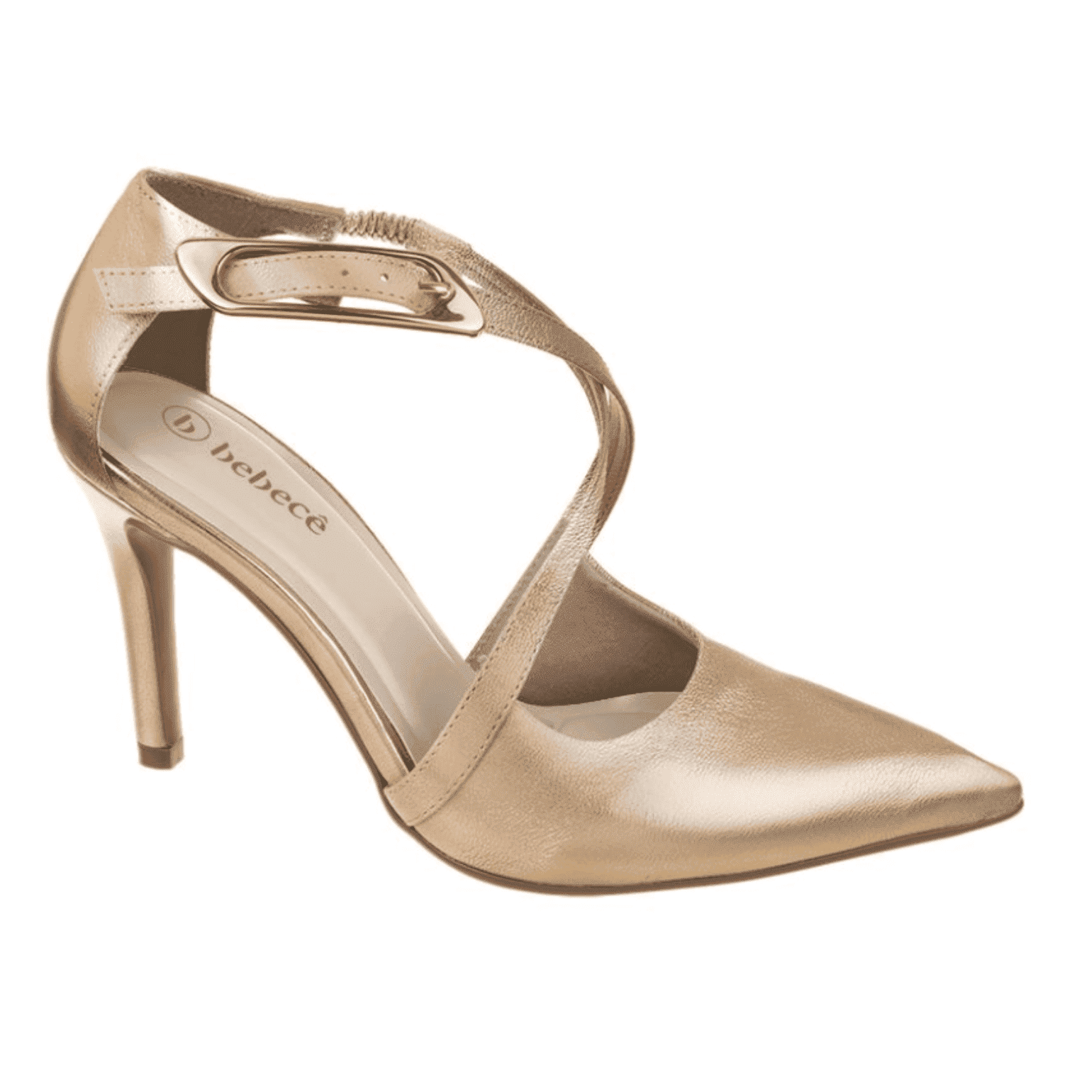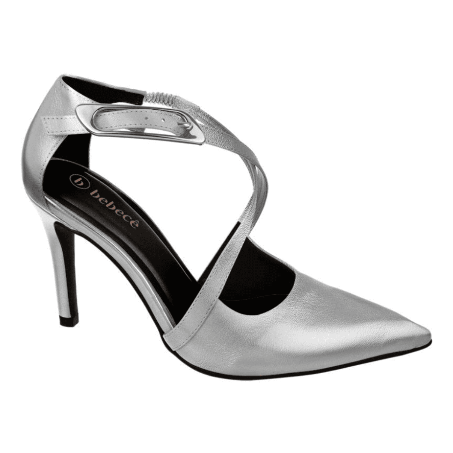 Stiletto con diseño moderno y hebilla grande dorada.