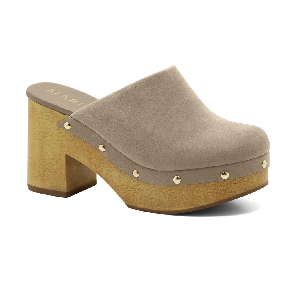 Suecos clásicos de gamuza con tachuelas en dorado.